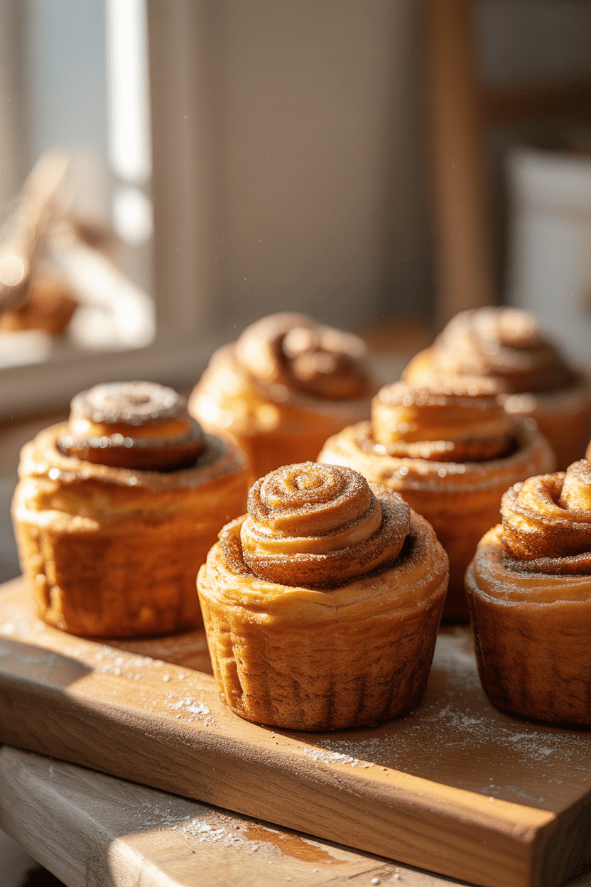 They’re flaky, buttery, and rolled with warm cinnamon sugar, then baked until golden and crisp on the outside while staying soft in the center. If you love croissants and muffins, this pastry is the best of both worlds — and surprisingly doable at home.