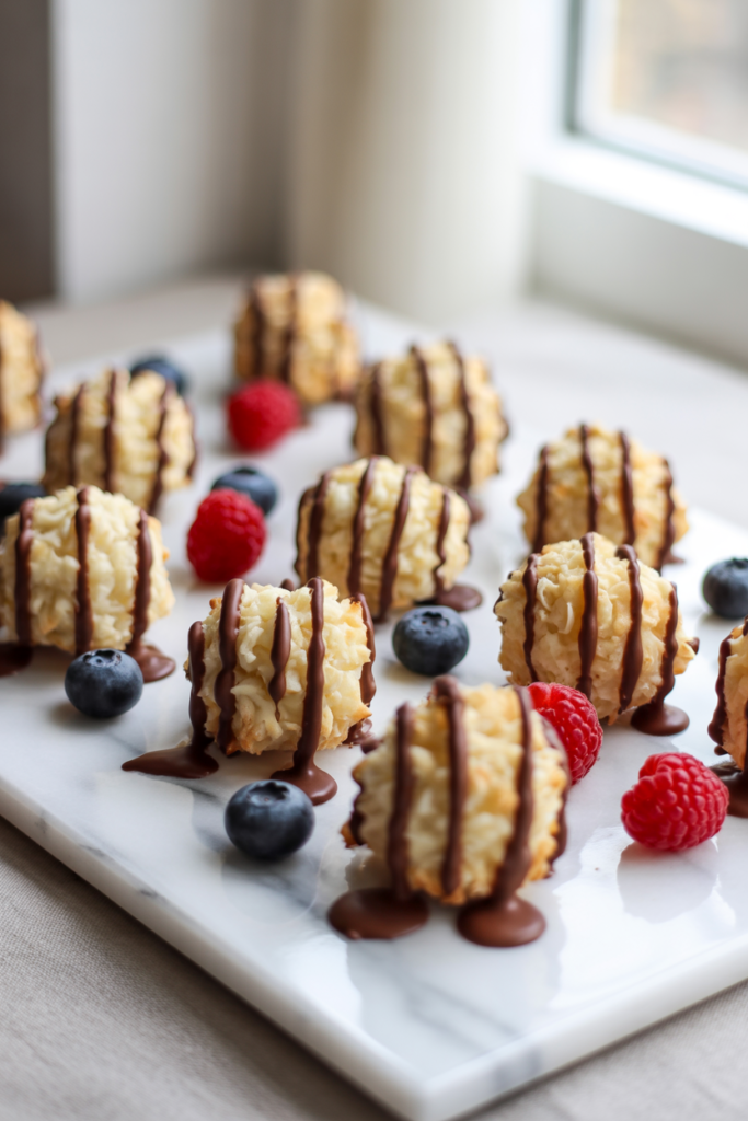 Coconut macaroons are a classic dessert loved for their chewy texture and rich coconut flavor. These mini macaroon bites are slightly crisp on the outside while staying soft and sweet inside.