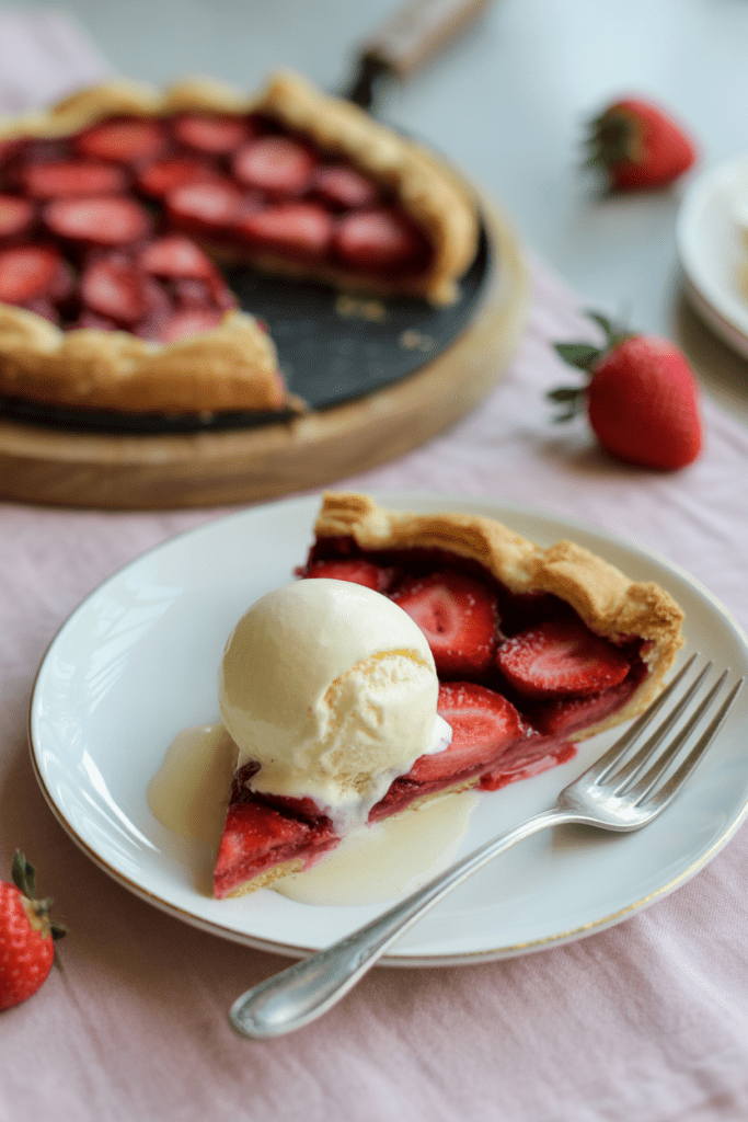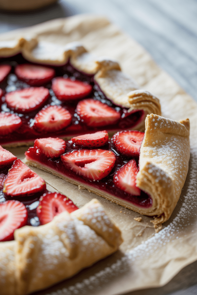 It’s not fussy like a pie. No lattice. No perfection required. Just folded edges, golden crust, and that irresistible contrast of flaky pastry and syrupy fruit. Whether you’re baking for spring gatherings, weekend brunch, or just because strawberries looked too good to pass up — this is the dessert you’ll want to make on repeat.